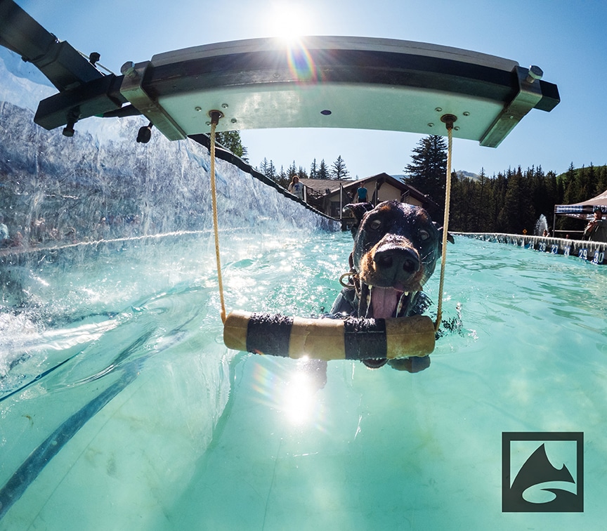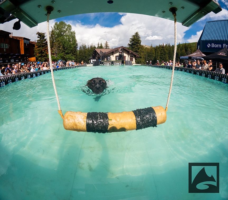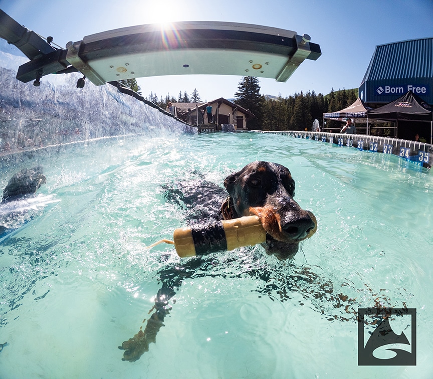 Pro Plan Speed Retrieve is a timed event that involves the K9 athlete jumping off the dock and swimming to a toy positioned at the far end of the pool. Once the dog retrieves the toy, the clock stops and the pup with the fastest time takes the prize.