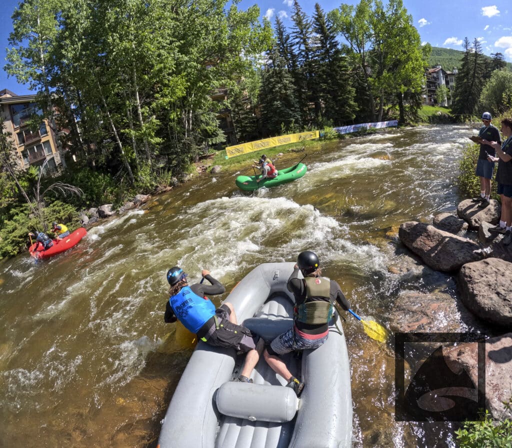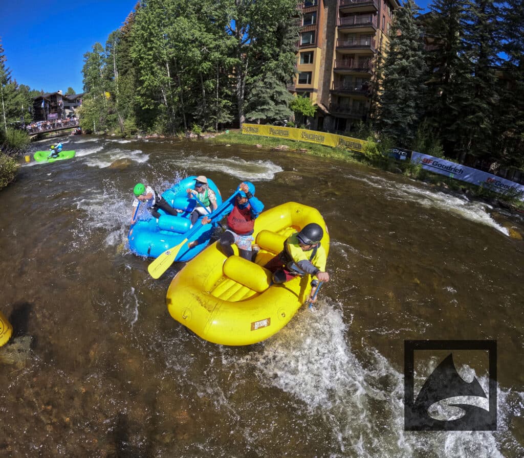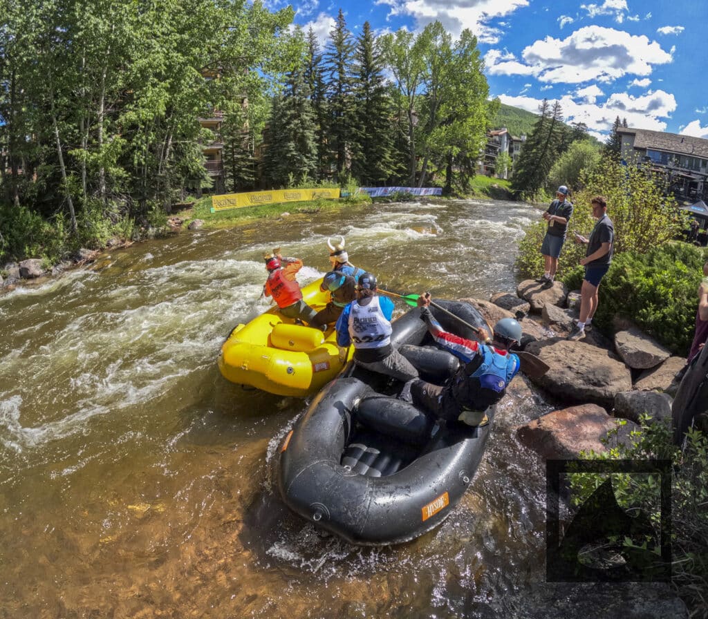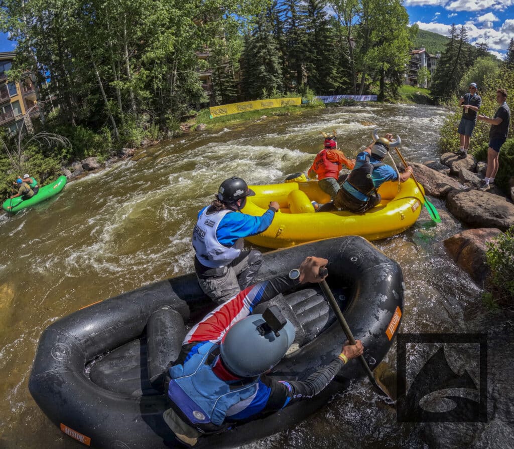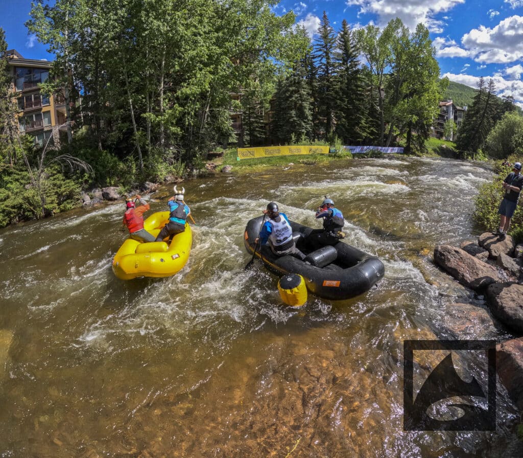 The Pacifico Raft Cross is a raft race (two person rafts) on the Class II / III whitewater of Gore Creek in Vail Village. Two person teams will have a chance to showcase their speed, agility, and aggression in a timed qualifying run through the heart of Vail Village on Gore Creek. Teams will then be placed in “race pods” of no more than three teams to go head-to-head in the Vail Whitewater Park (1/10th of a mile). The winner(s) advance to the next round. Along the way, rafters will have to navigate no less than 2 upstream gates and don’t forget, RAMMING IS ALLOWED.