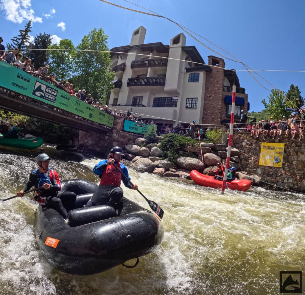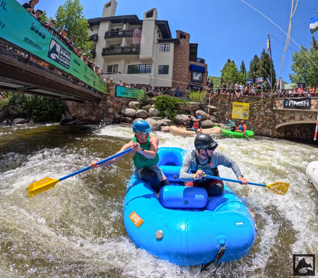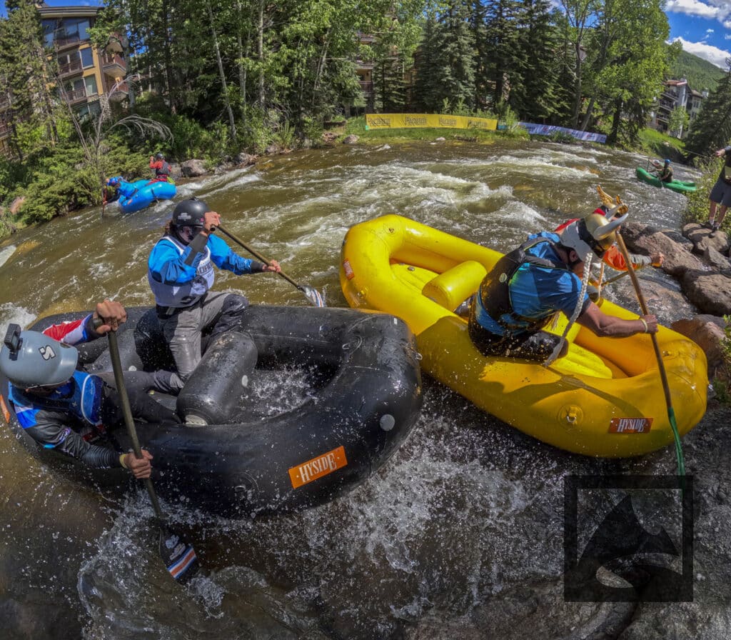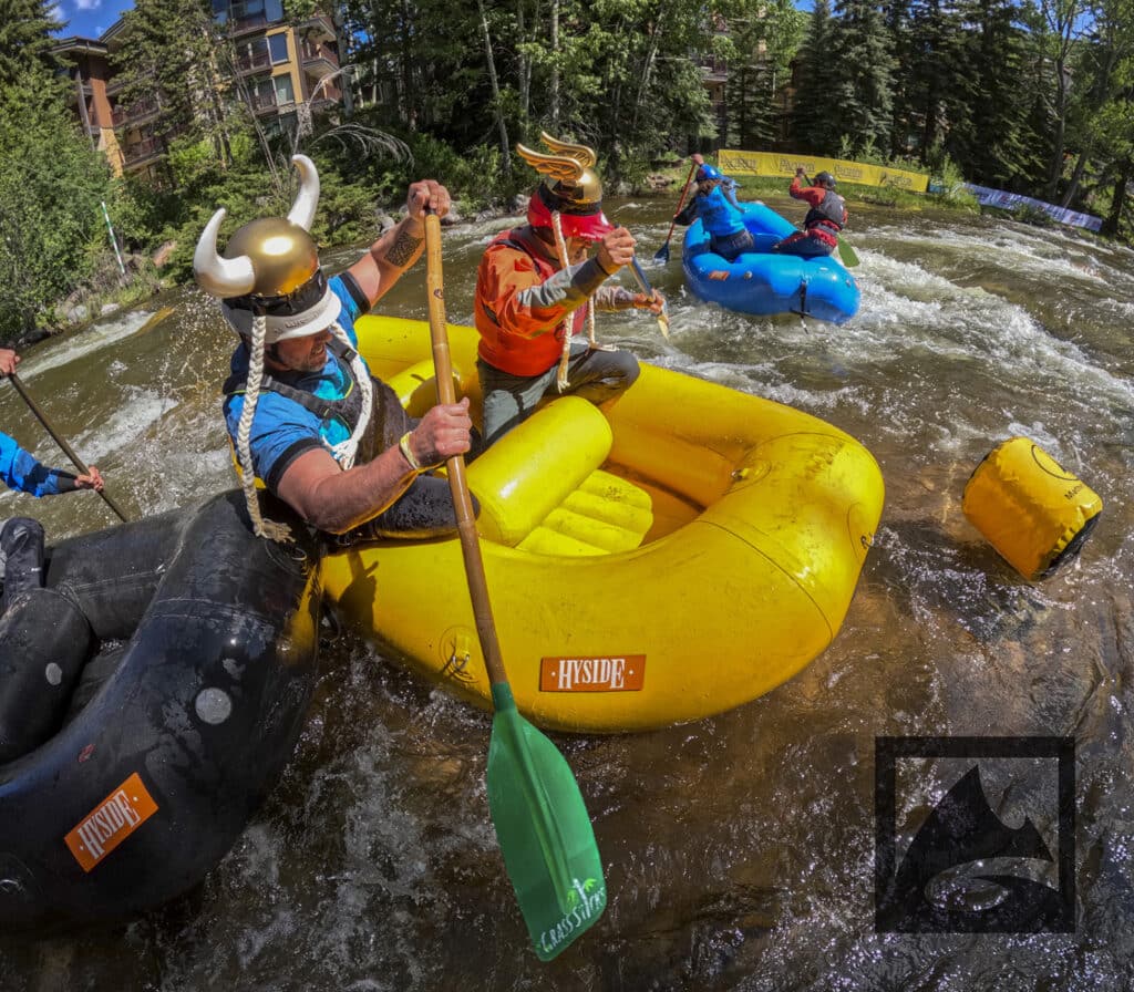 The Pacifico Raft Cross is a raft race (two person rafts) on the Class II / III whitewater of Gore Creek in Vail Village. Two person teams will have a chance to showcase their speed, agility, and aggression in a timed qualifying run through the heart of Vail Village on Gore Creek. Teams will then be placed in “race pods” of no more than three teams to go head-to-head in the Vail Whitewater Park (1/10th of a mile). The winner(s) advance to the next round. Along the way, rafters will have to navigate no less than 2 upstream gates and don’t forget, RAMMING IS ALLOWED.