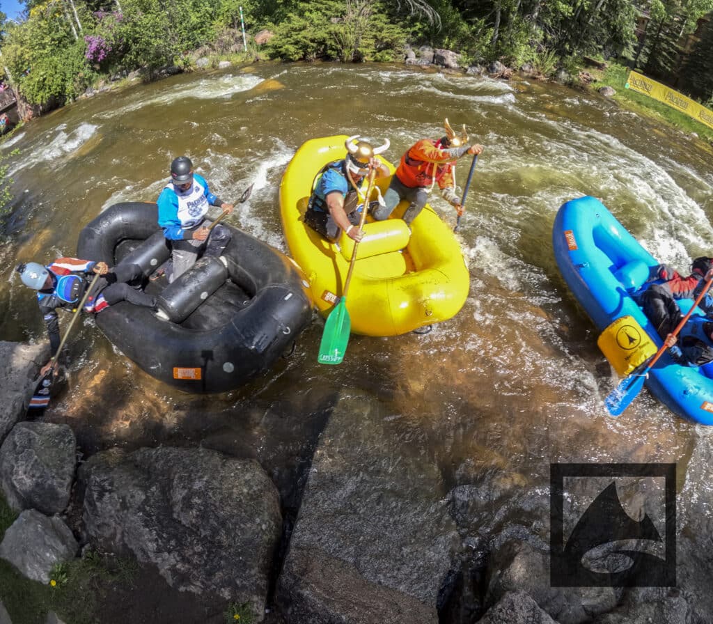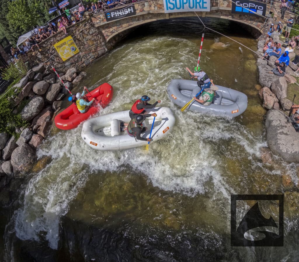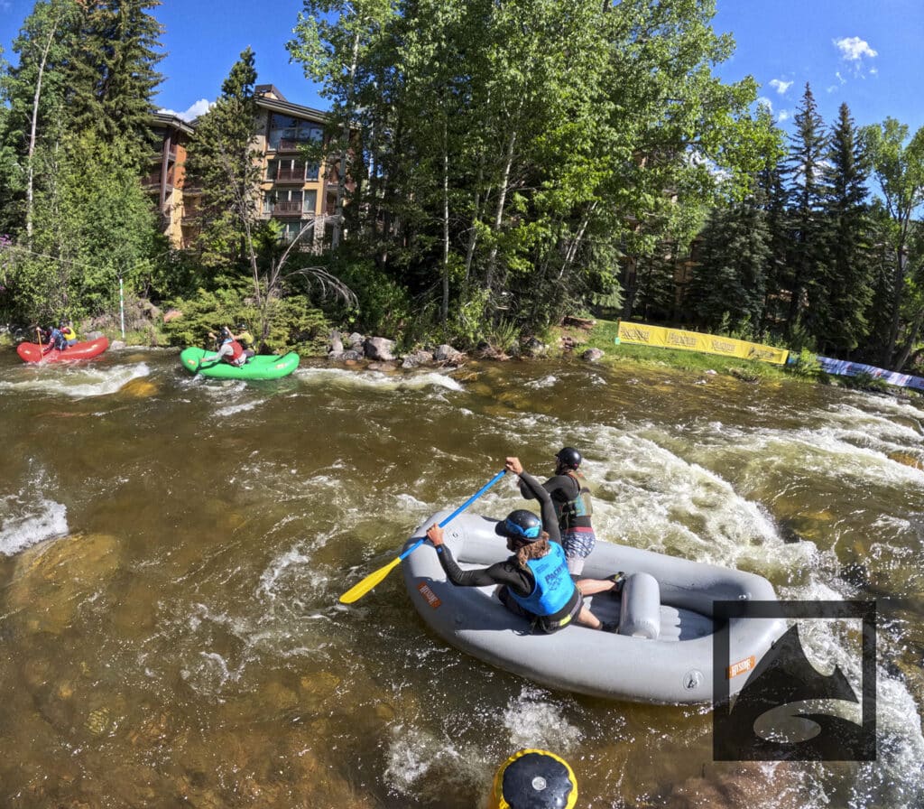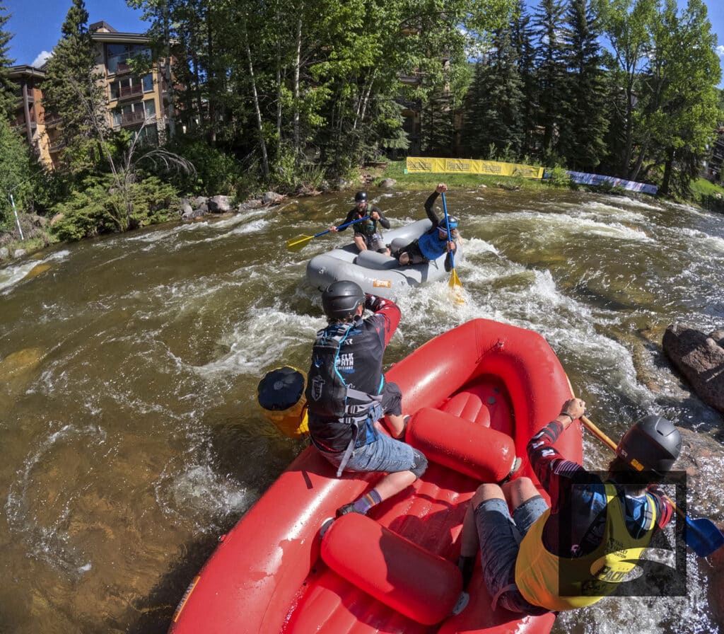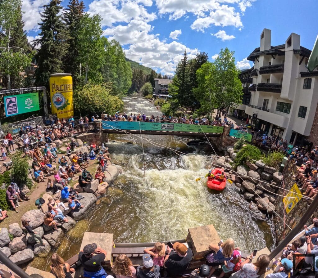 The Pacifico Raft Cross is a raft race (two person rafts) on the Class II / III whitewater of Gore Creek in Vail Village. Two person teams will have a chance to showcase their speed, agility, and aggression in a timed qualifying run through the heart of Vail Village on Gore Creek. Teams will then be placed in “race pods” of no more than three teams to go head-to-head in the Vail Whitewater Park (1/10th of a mile). The winner(s) advance to the next round. Along the way, rafters will have to navigate no less than 2 upstream gates and don’t forget, RAMMING IS ALLOWED.